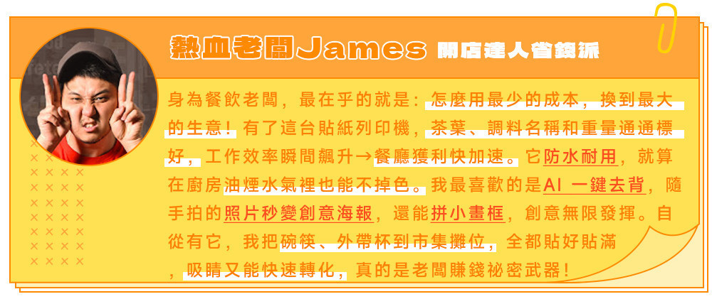 創業不用大成本,一鍵印出「限量貼紙」,文創小物、品牌周邊、產品包裝全搞定!從提升質感到增加曝光,讓你的攤位、門市、商品瞬間脫穎而出,小投資就能帶來大加分!