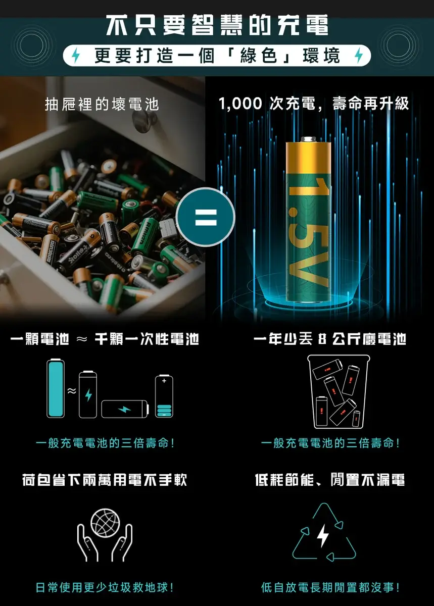 這樣說可能沒實感,但是搬進日常就很有感!我們 上班需要休息,電池也需要 —— 就像值班有人上班,有人休息,大家都活得久一點;家裡每天用的滑鼠、兒童玩具、錄音設備都需要電池,那電池當然需要長命百歲。
