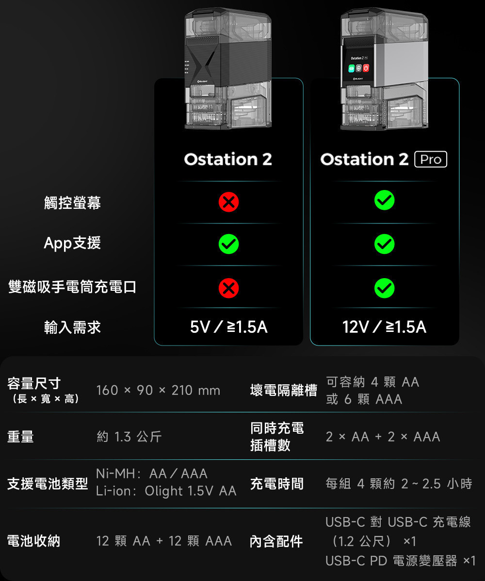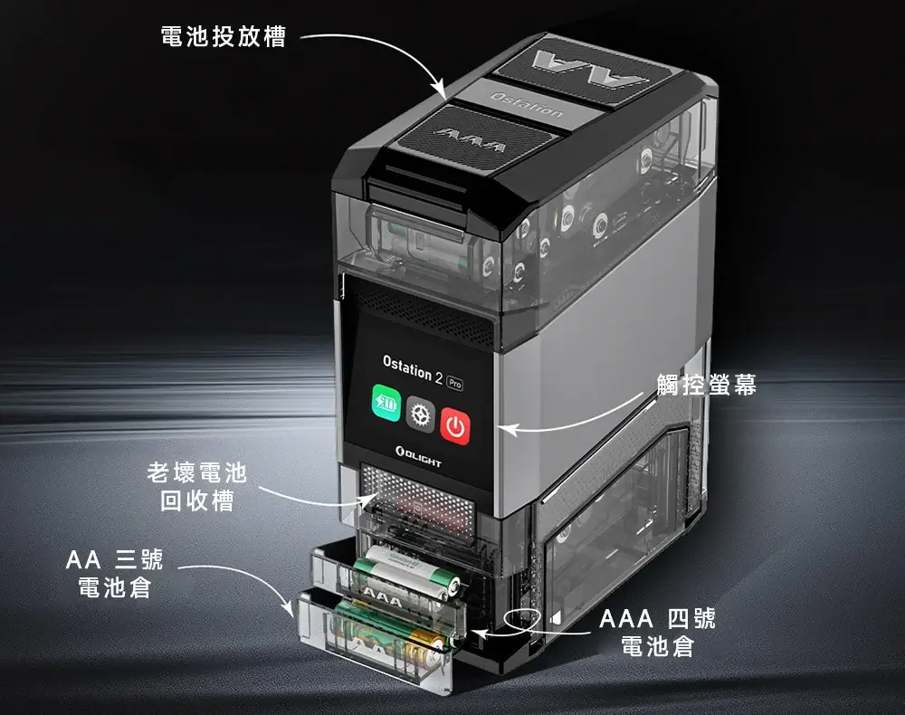 但是要注意!由於每家鋰電的晶片協定不同,Ostation 2 僅支援 Olight 自家專屬鋰電池,以確保辨識與安全保護機制能正常運作;若投入他牌 1.5 V 鋰電,會導致無法正確識別並扔入廢棄倉,並沒有辦法正常充電呦!