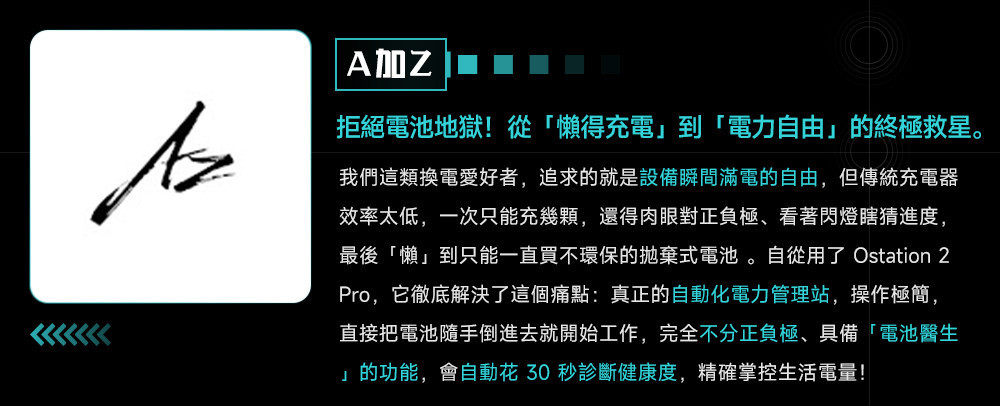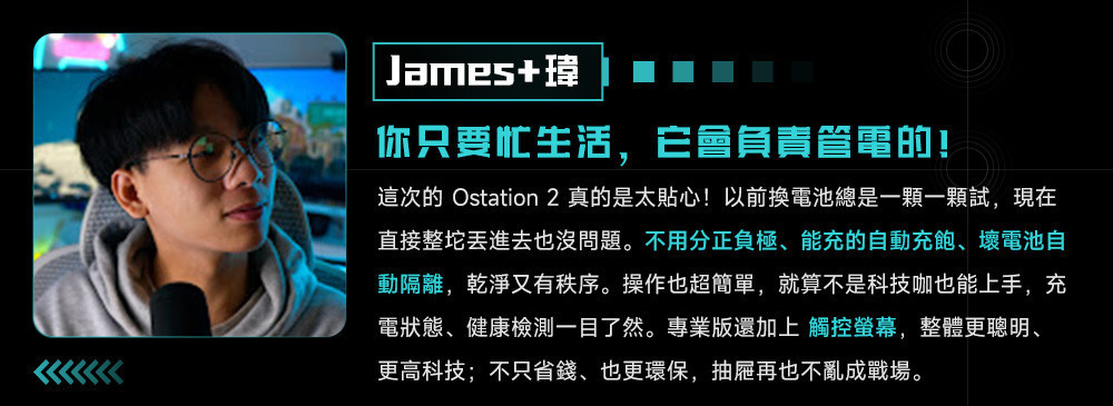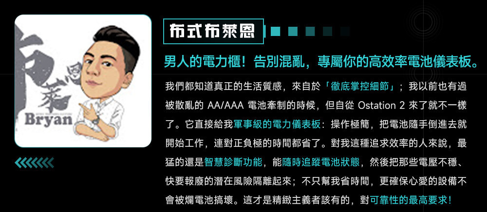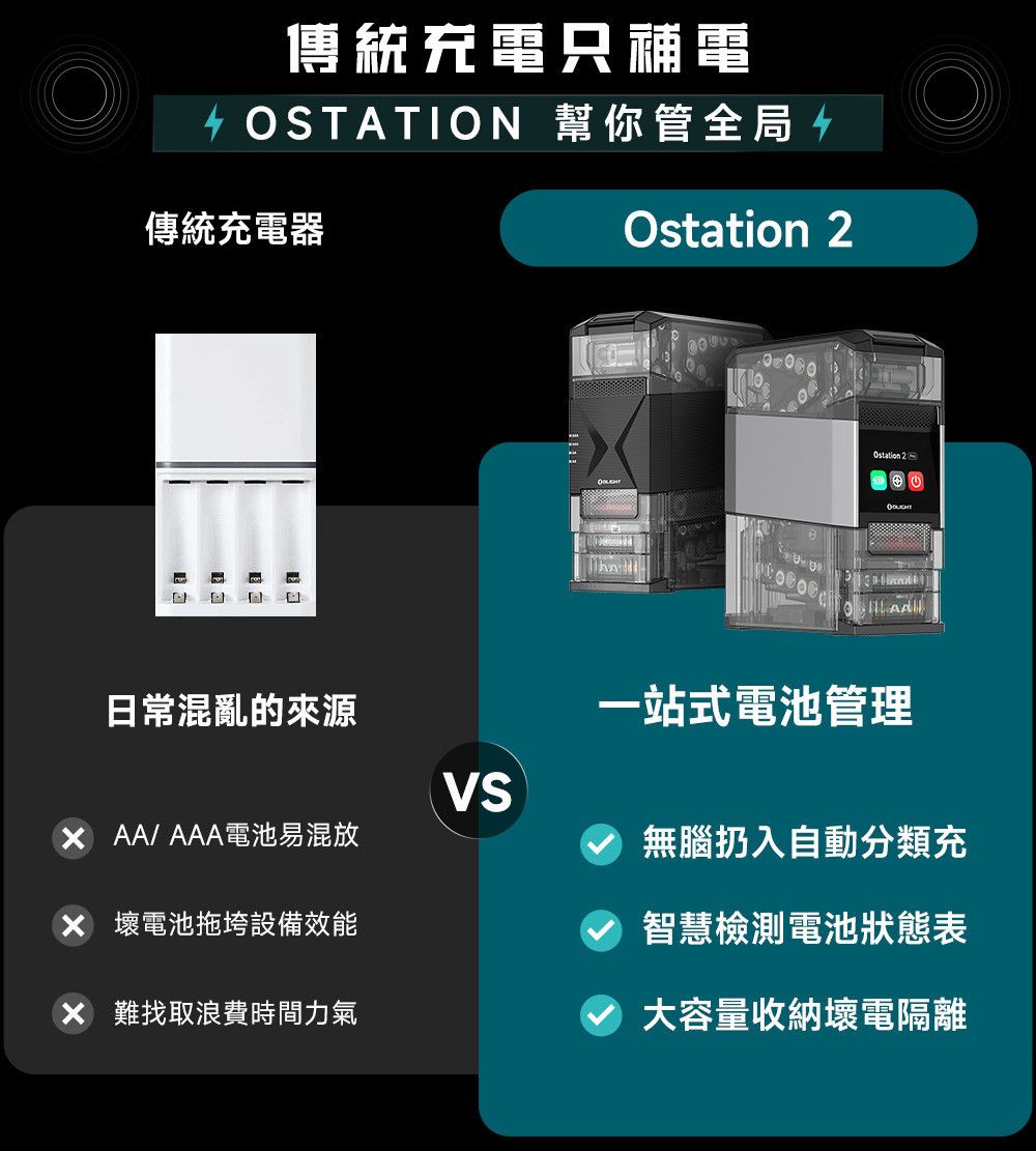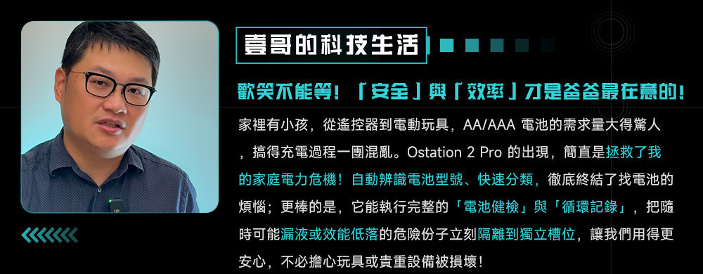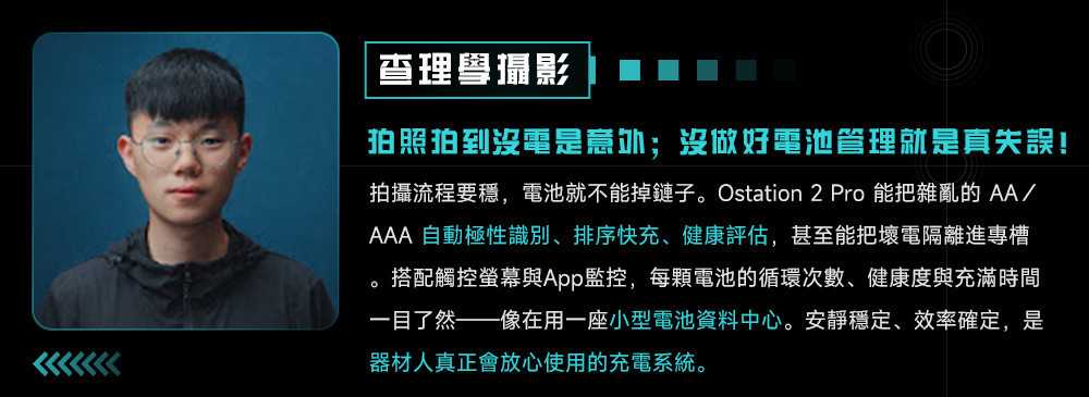 實際使用上,你再也不會遇到「剛換電池卻沒反應」的狀況。Ostation 2 讓每一顆被充的電池,都確定能用、敢用、用得久。