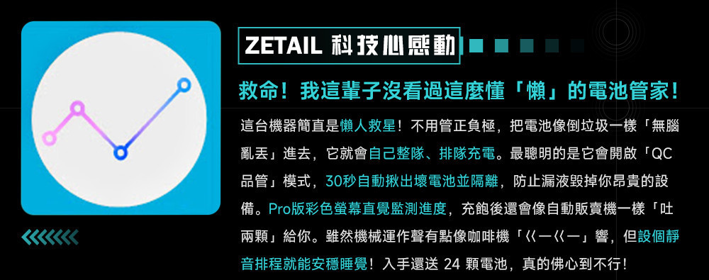 整台機器就是電池儲藏室:AA 12 顆 + AAA 12 顆,各就各位;取用抽屜設計一次推出兩顆,補位時也能維持隊形。如果系統偵測到「壞電」或「無效電池」,它們不會再混進良品,而是直接送進壞電專槽集中營,廢棄槽最多可收納 4 顆 AA 或 6 顆 AAA 電池,就像公司裡的「離職區」,不健康的員工會自動報到;避免復活在抽屜角落、下次又被塞進遙控器。