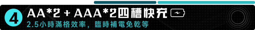 現在的家電不是兩顆電池就是四顆起跳,一顆一顆慢慢充根本來不及!Ostation 2 採用四槽併充設計,AA/AAA 同時快充效率提升 30%。單槽輸出最高達 AA 1.0 A/AAA 0.6 A,兩顆電池平均約 2~2.5 小時可滿格;若狀態良好,四顆電池最快約兩小時充滿。
