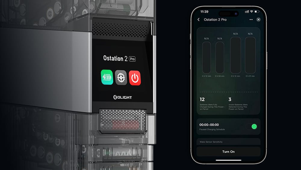 透過 Olight App,Ostation 2 能將充電管理變成可視化體驗!每一次的充電,都像你遞出「單顆電池履歷管理」,你能即時查看每個槽位的電量、循環次數與健康狀態,手機畫面直接顯示曲線變化與充電進度。充滿時會推播通知,若有異常則立即警示。