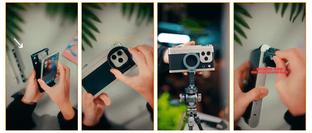 當手機殼具備了擴展能力,手機的可能性就不再被原廠設定綁住。這次延續前代架構,加入冷靴快拆、定位波珠與 T 卡口等專業級設計,補光燈、麥克風、濾鏡、Magsafe 支架、鏡頭,都能順著一推、一扣自然到位,從拍攝、補光、收音到調色,一套殼就能完整串起你的創作流程。街拍、旅遊、工作側拍,各種場景需求都能靠快速擴展模組優雅轉換,不用換設備,也不用重新適應操作方式。